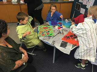 Friday 31st March - Today we had some of our friends from Kindy come and spend some time with us in Room 1. We had a great time painting, making glitter art, playing hopscotch, doing chalk art, and playing some team games outside. We are looking forward to our friends coming back next Friday!